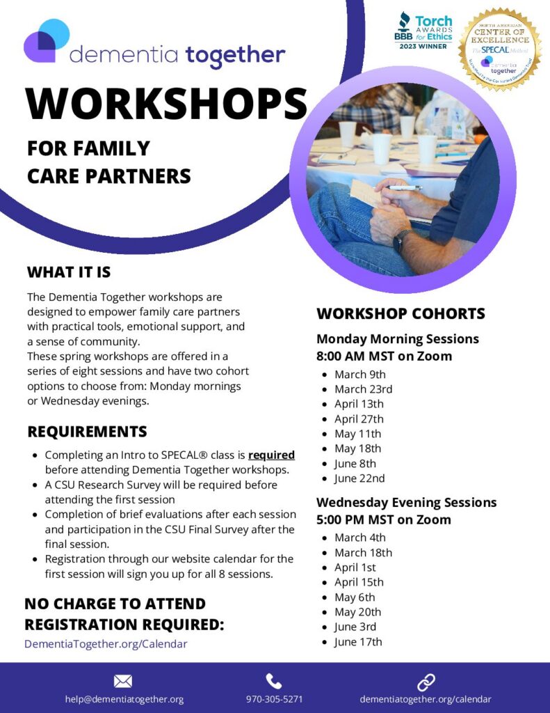 Thank you for your interest. This workshop series is limited to 15 participants. All registrations for this class are now full. Dementia Together will offer this workshop series again. Contact the office if you would like to be added to the waiting list.